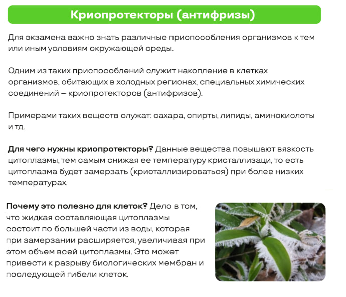 Также являются криопротекторами (антифризами) – защищают клетки от разрывов при низких температурных условиях.