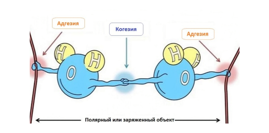 2) Когезия – сцепление молекул между собой и адгезия – сцепление с другими молекулами;