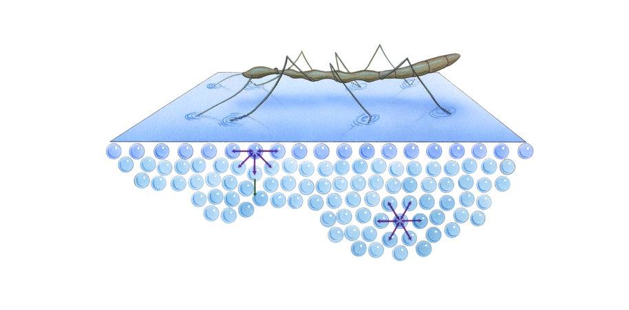 3) Высокое поверхностное натяжение воды и ее капиллярные свойства за счет ее полярности и водородных связей. Благодаря поверхностному натяжению на поверхности воды образуется «пленка», на которой могут обитать некоторые организмы (водомерка);