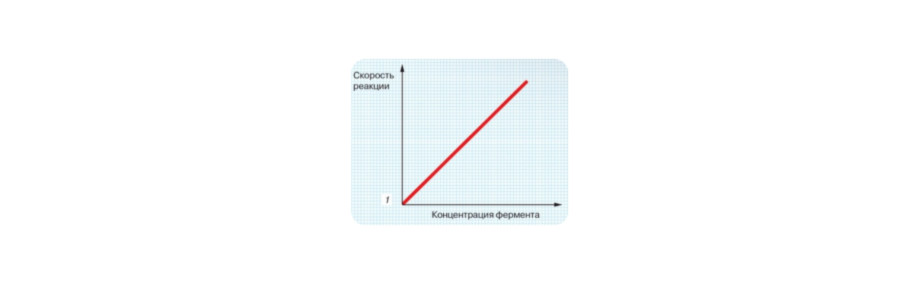 - зависимость от концентрации фермента: скорость реакции прямо пропорциональна концентрации фермента.