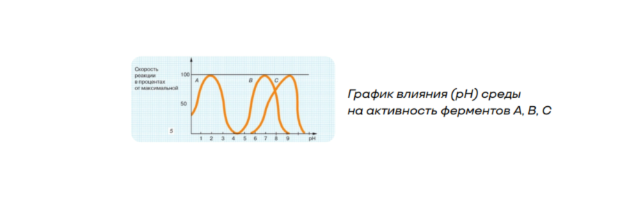 - зависимость от кислотности (pH) среды: на активность фермента и скорость реакции влияет pH среды. Ферменты активны при различной концентрации ионов Н+ и ОН- .