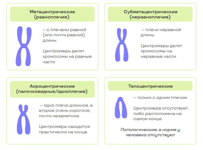 Типы хромосом в зависимости от расположения центромеры