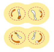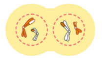 • Набор хромосом у полюсов стал гаплоидным, т.к. у каждого из них оказываются двухроматидные хромосомы, НЕ ИМЕЮЩИЕ гомологичной пары (т.е. происходит редукция числа хромосом и молекул ДНК)
