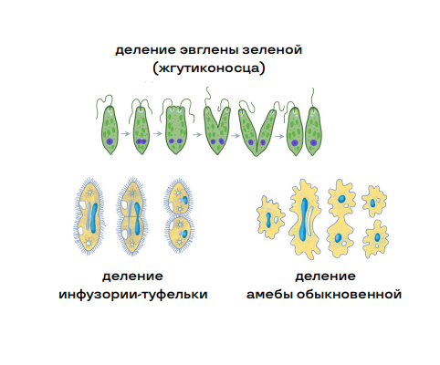 • может происходить в продольной плоскости (у жгутиконосцев), в поперечной (у инфузорий) или в любом направлении (например, у амеб)