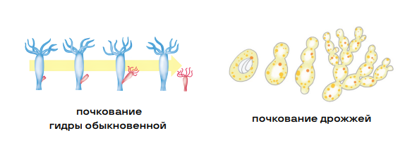 • чаще всего встречается у одноклеточных грибов (дрожжей) и кишечнополостных (например, у гидры обыкновенной)