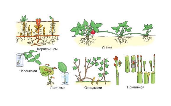 • больше всего характерно для растений (происходит с помощью специальных вегетативных (т.е. не участвующих в половом размножении) органов)