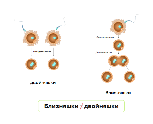 Двойняшки – разнояйцовые (дизиготные) близнецы образуются при одновременном оплодотворении двух яйцеклеток двумя сперматозоидами Двойняшки могут быть разного пола и отличаться друг от друга внешне
