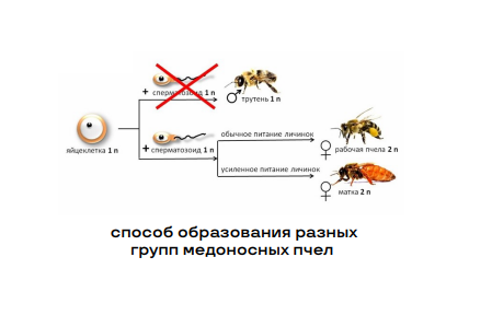 • данный механизм размножения у общественных насекомых приводит к формированию различных каст (групп особей) и позволяет регулировать численность потомков каждого типа