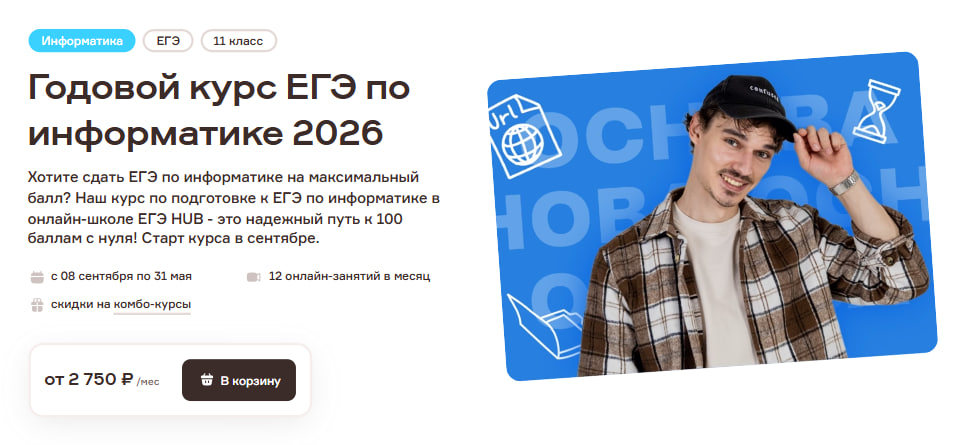 Из всех вариантов курсы по информатике от ЕГЭ HUB — одни из самых надежных. Здесь вам предложат: