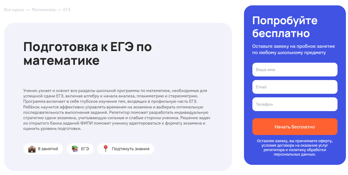 Главная особенность занятий — индивидуальный подход, четкая система подготовки, расписанная на весь учебный год. Такой формат позволяет не просто освоить темы, а довести решение задач до автоматизма и уверенно чувствовать себя на экзамене.