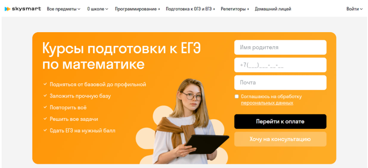 Skysmart делает ставку на индивидуальные занятия. Это удобно для тех, кто хочет идти в своем темпе: можно выбрать преподавателя, составить гибкий график и отработать именно те темы, которые вызывают трудности, например, задачи из тригонометрии или задания с параметрами.