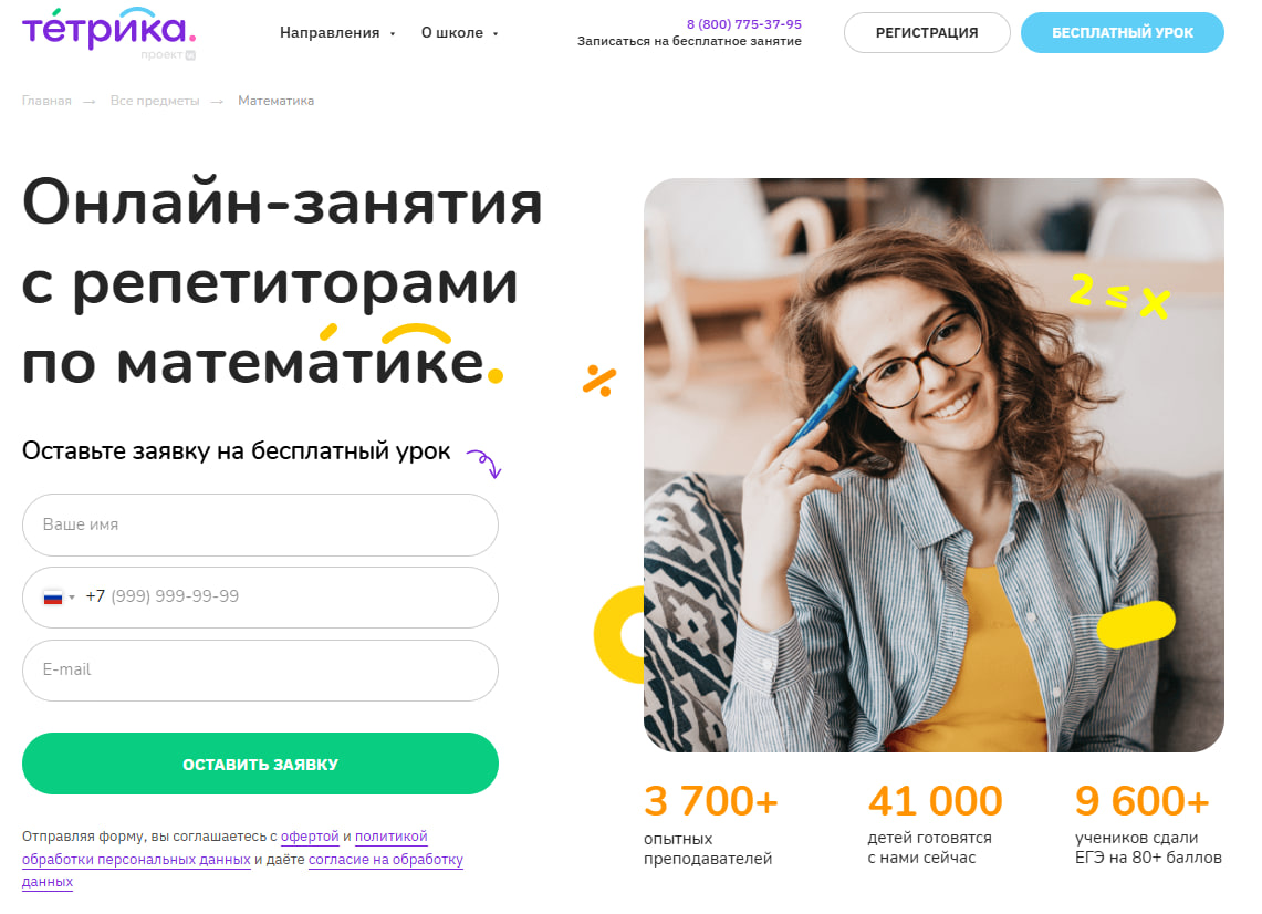 Тетрика — это онлайн-версия репетиторства. Ученик работает с личным преподавателем на интерактивной доске, можно выбрать формат: один на один или мини-группу. В курсе есть все: от алгебры и геометрии до олимпиадных задач. Такой формат дает гибкость для учеников, но результат сильно зависит от того, какой преподаватель попадется.