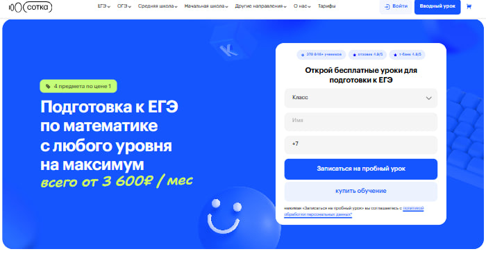 В «Сотке» делают акцент на дисциплину: домашки проверяют до полного правильного ответа, а пробники помогают выявить слабые места. Программа охватывает все разделы математики: от функций и геометрии до математического анализа.