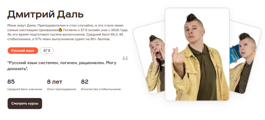 Дмитрий Даль | ЕГЭ Хаб | С 2016 года | 2 750 ₽ | 82+ | Яркие вебинары, увлекательная подача материала |