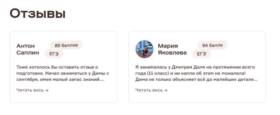 Не ориентируйтесь только на красивые страницы — отзывы учеников о репетиторах по русскому языку скажут больше. Ищите примеры с фактами: где именно репетитор помог, на сколько вырос балл, как проходили занятия. У онлайн-школ ЕГЭ Хаб, часто можно найти скрины с результатами и реальные истории выпускников — это куда полезнее, чем просто «по«понравилось, спасибо».