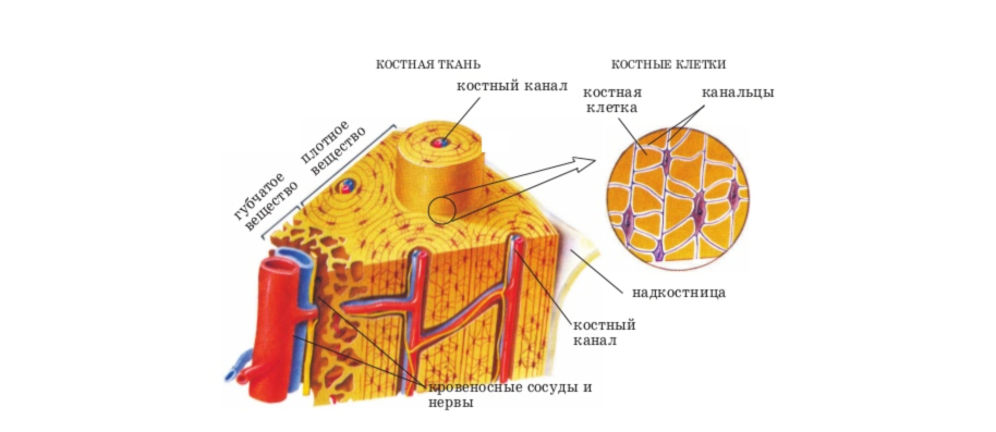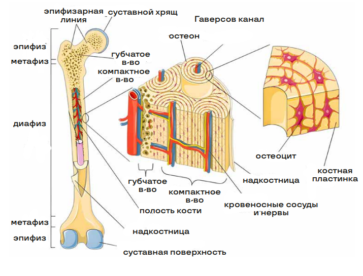 Снаружи покрыта надкостницей (кроме зон суставного хряща) – слоем соединительной ткани, содержащей много сосудов и нервов.
