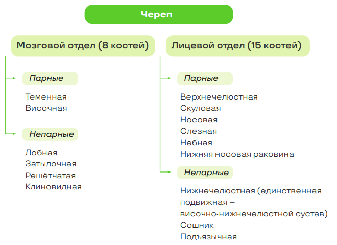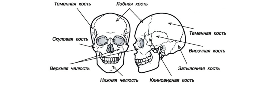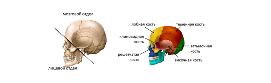 Примеры: кости мозгового отдела черепа, лопатки, кости таза и отростки позвонков.