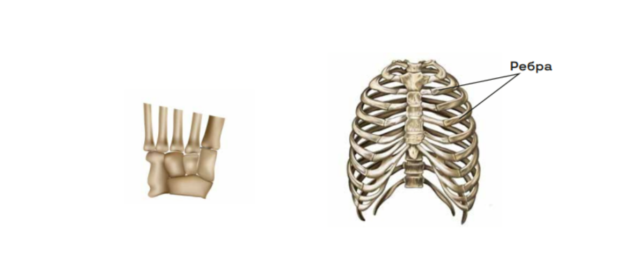 Примеры: Длинные: рёбра и грудина Короткие: кости запястья, предплюсны, тело позвонков