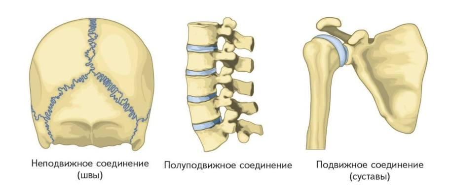 Примеры: ребра с позвонками (реберно-позвоночный сустав), грудино-ключичный сустав, коленный сустав, тазобедренный сустав, локтевой сустав, лучезапястный сустав, плечевой сустав и т.д.