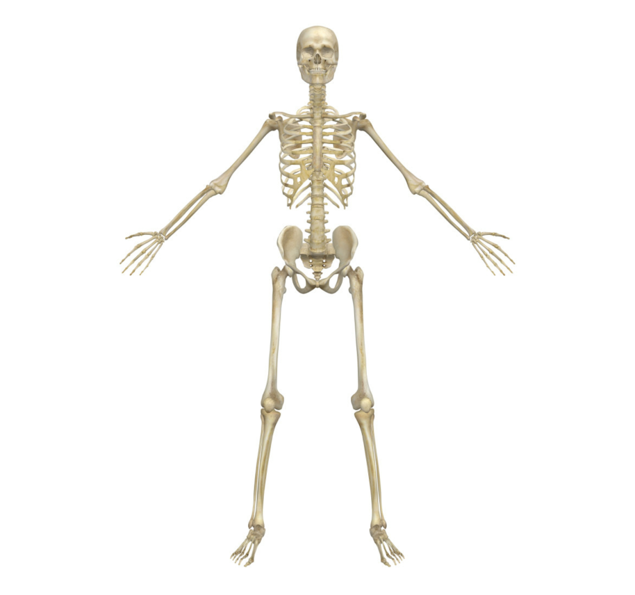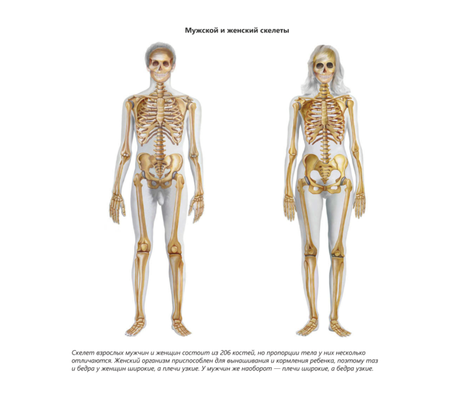 Состоит из 205-207 костей (при рождении в среднем состоит из 270 костей, некоторые из которых позже срастаются).