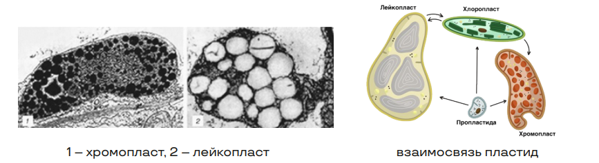 • Могут превращаться в хромо- и хлоропласты;