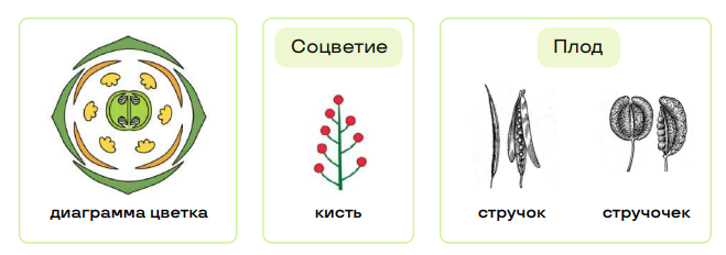 Примеры: капуста, репа, редис, редька, пастушья сумка, сурепка, ярутка, хрен, горчица, рапс, вечерница.