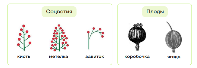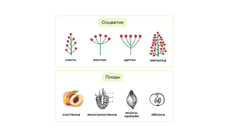 Соцветия: метелка, початок, колос, сложный колос.