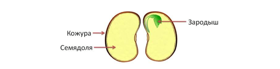 • Из диплоидной (2n) зиготы путем митоза формируется зародыш семени (зародышевый стебелек с пoчечкой + зародышевый корешок + семядоли).