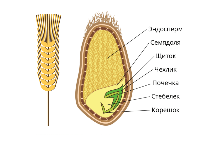 - Фаза цветения: период опыления и оплодотворения цветков, начала формирования семени и плода – зерновки (зерна).