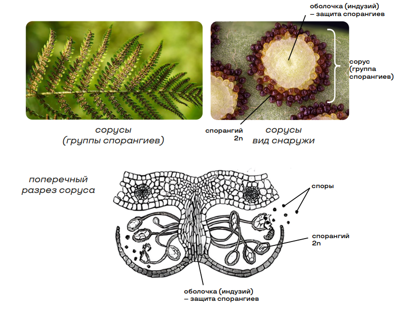 Все высшие растения имеют спорангии – органы, в которых образуются споры. Спорангии являются частью диплоидного спорофита, поэтому его клетки диплоидные (2n).