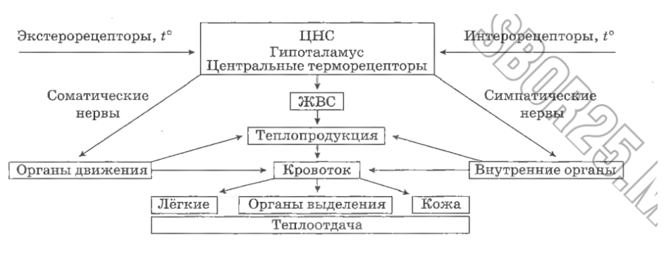 Общая схема терморегуляции выглядит следующим образом: