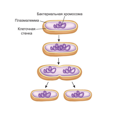 Бактерии размножаются бесполым путем с помощью простого бинарного деления. Бактерии размножаются очень быстро – в благоприятных условиях процесс деления происходит раз в 20-30 минут.