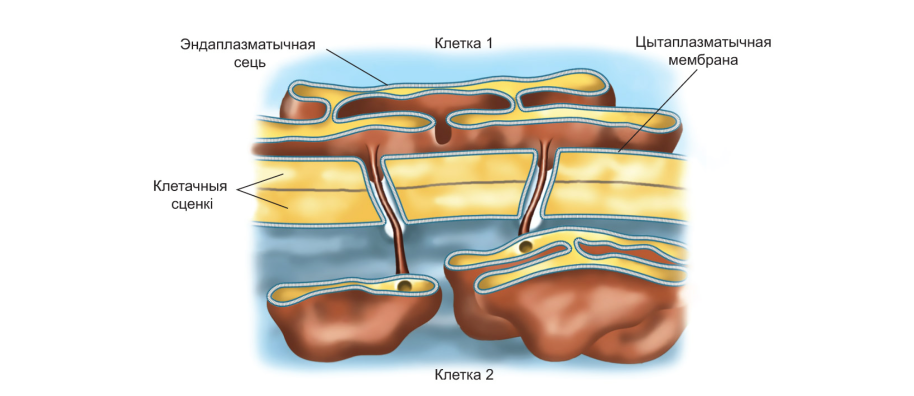 Имеет плазмодесмы – цитоплазматические каналы (тяжи), соединяющие протопласты растительных клеток друг с другом и обеспечивающие межклеточный транспорт различных веществ. Внутри плазмодесмы содержится мембранная трубочка, связывающая участки эндоплазматической сети двух клеток.