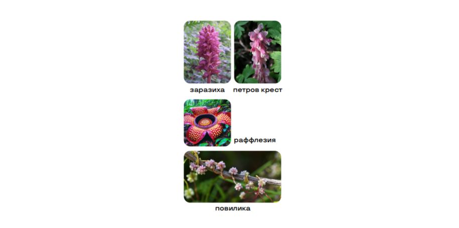 Примеры: петров крест, заразиха, раффлезия, повилика.