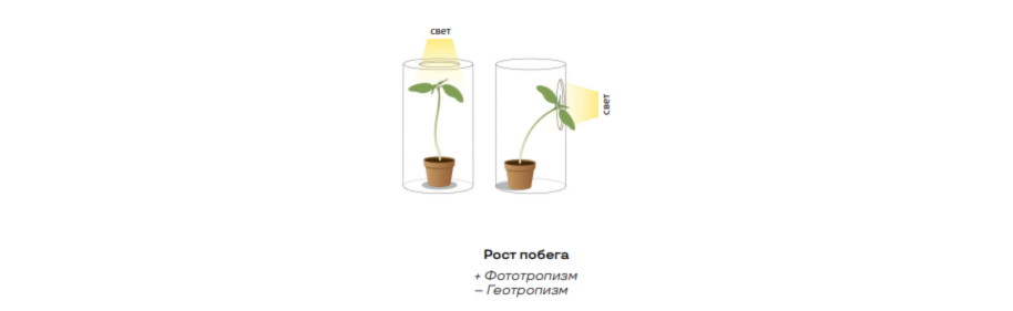 Пример: побег растения обладает положительным фототропизмом, а корень – отрицательным.