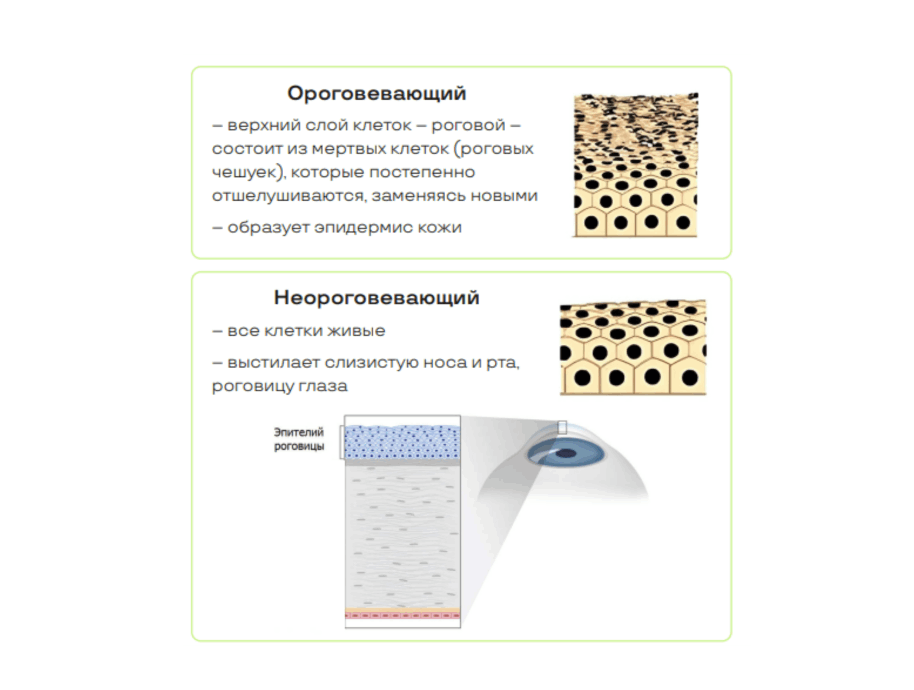 1) Покровный эпителий – имеет пограничное положение, образует покров кожи и слизистые внутренних органов.