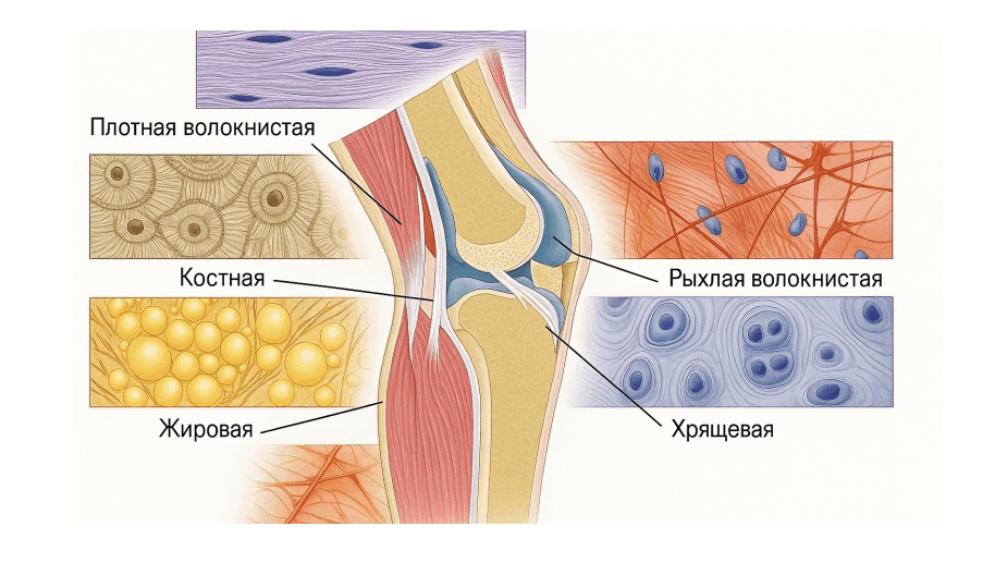 ◦ собственно соединительные ткани (рыхлую и плотную волокнистые);