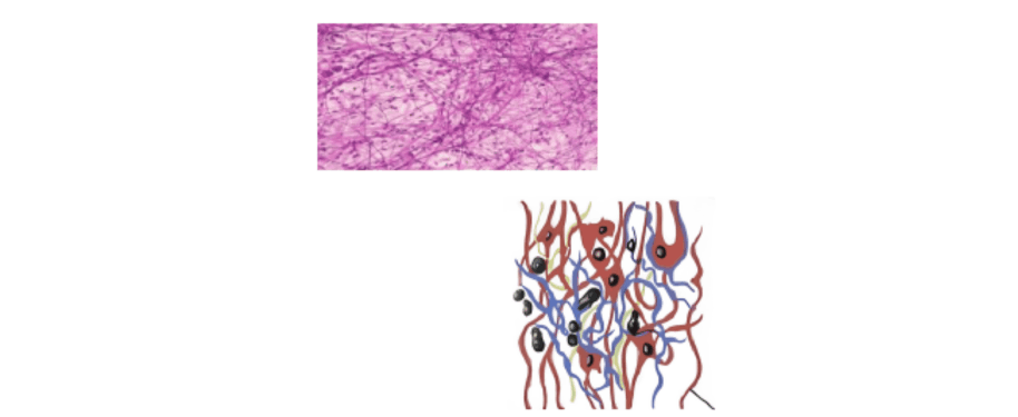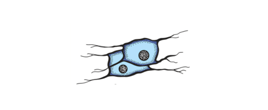 • Клетки вытянуты в волокна, соединяющиеся между собой с помощью контактов – нексусов/анастамозов;
