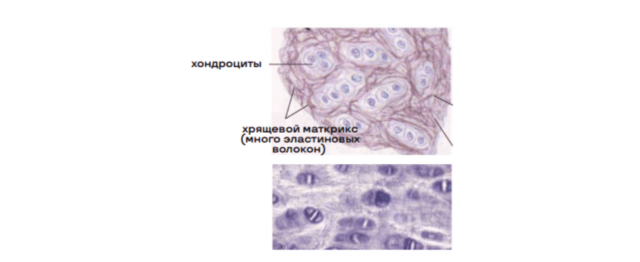 – межклеточное вещество содержит коллагеновые и эластические (эластиновые) волокна.