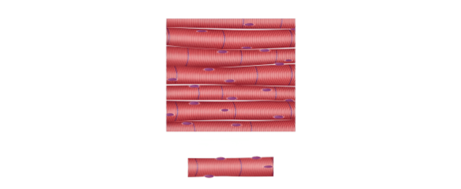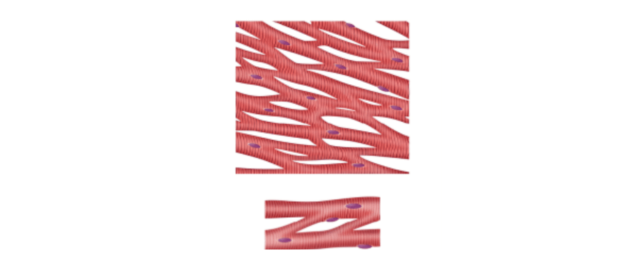 • Клетки имеют поперечно-полосатую исчерченность (миофибрилл много, они расположены упорядочено);
