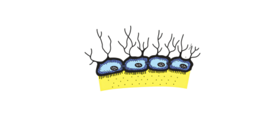 – входит в состав органов чувств (есть во внутреннем ухе, сосочках языка, обонятельной зоне полости носа;