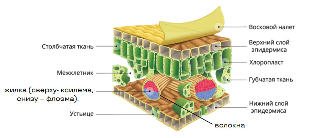 - обеспечивает транспорт между листовой пластинкой и стеблем;