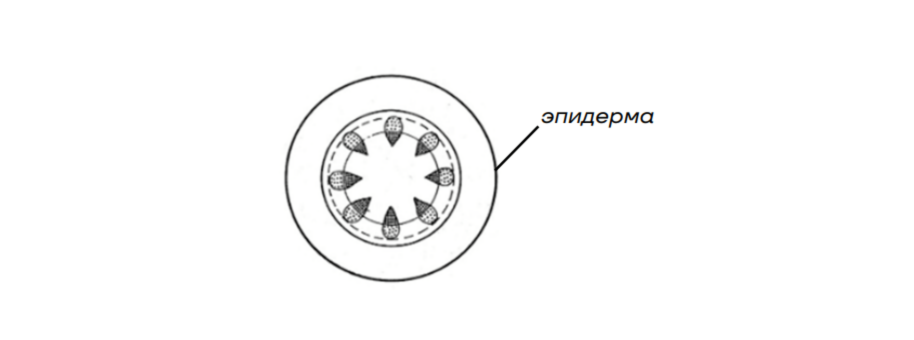 Проводящие пучки расположены упорядоченно (по кругу). Пучки открытого типа – имеют камбий.