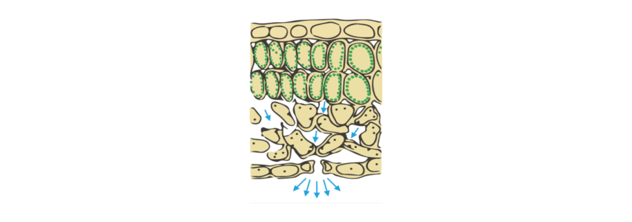 9. От стороны листа: интенсивность испарения воды (транспирации) выше с верхней стороны листа и ниже с нижней.
