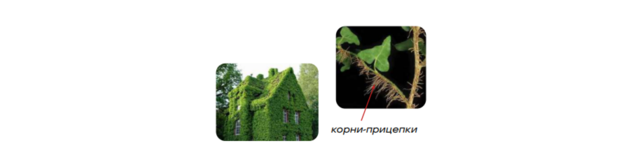 Функция: прикрепление растения к поверхности (к стволам деревьев, фасадам зданий и т.д.) – опорная функция.