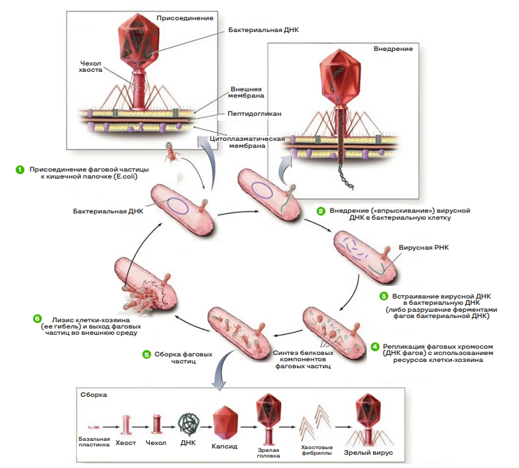 Бактериофаг – вирус, поражающий бактериальные клетки.